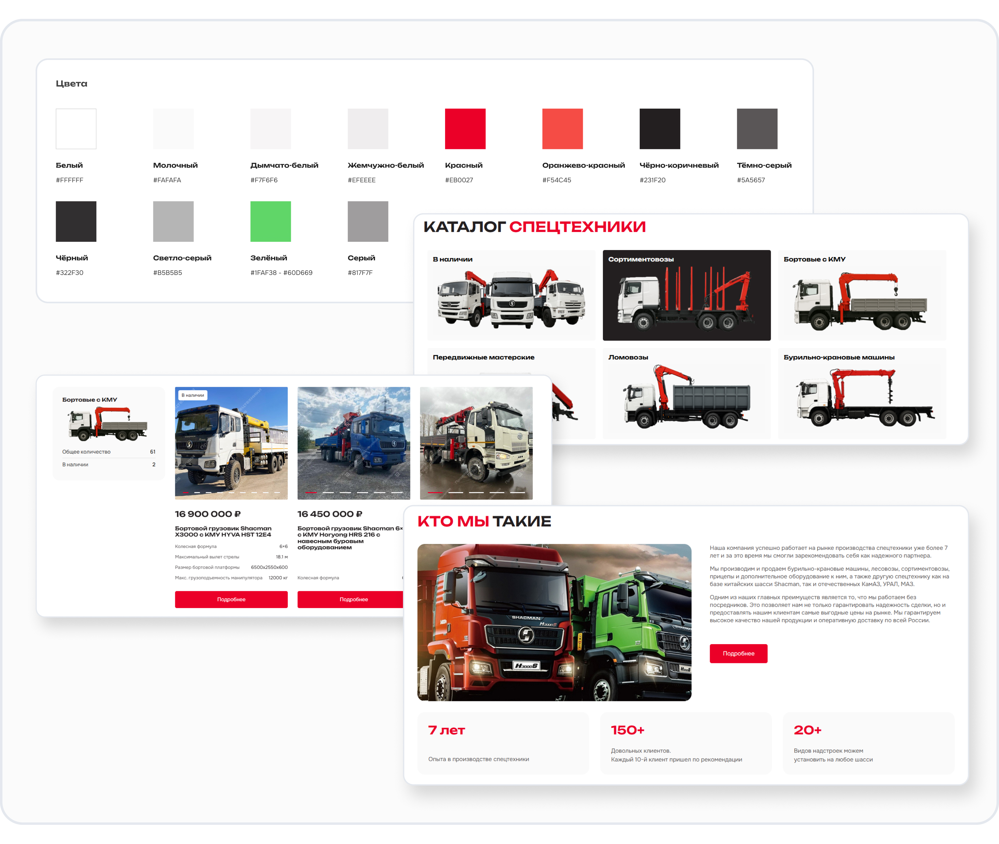 У компании уже был сайт по спецтехнике, поэтому визуальный стиль мы решили оставить узнаваемым. Но над структурой